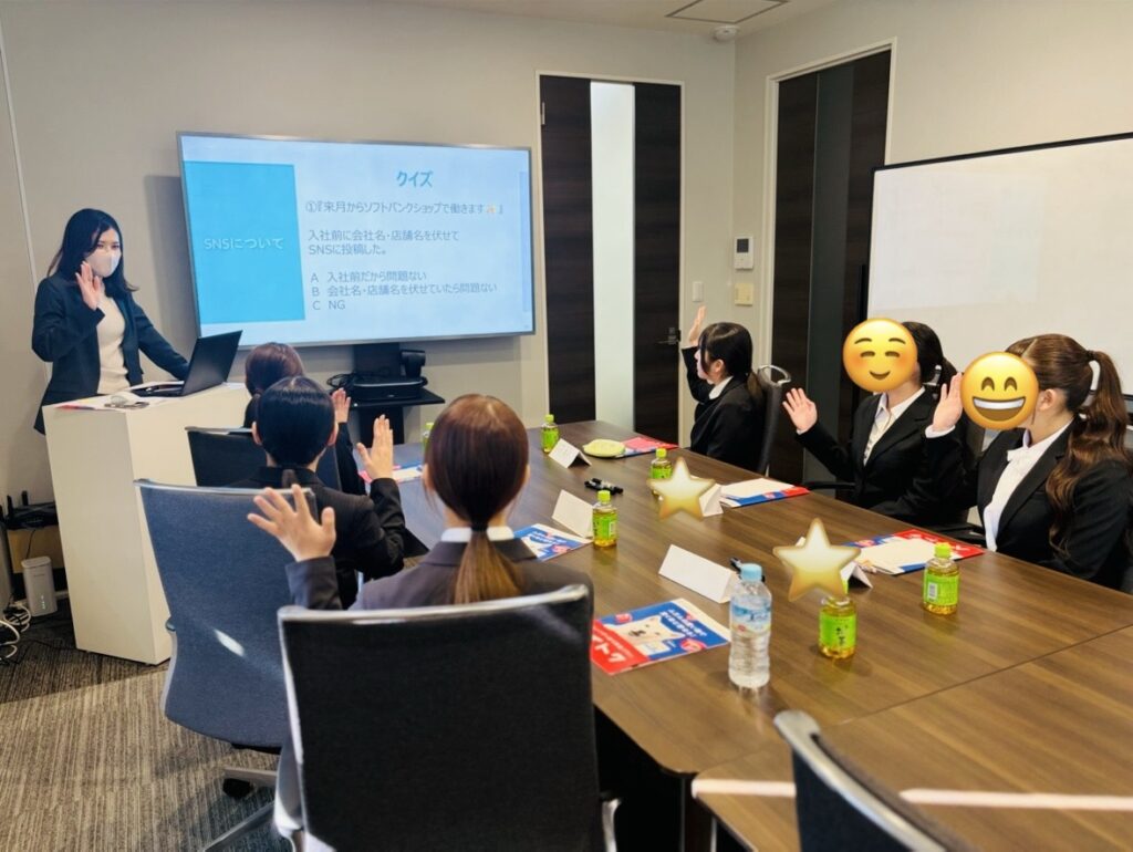 また、ショップクルーとしての『身だしなみ』、現代では欠かすことのできない『SNS』の適切な使い方など、社会人スタートする上で大切なポイントは、クイズ形式で一緒に考えてもらいました🧐